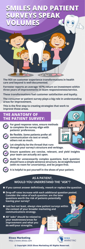 Patient surveys are key to improving oral health experiences, driving satisfaction and loyalty with measurable ROI. Effective surveys should be simple, concise, aligned with patient preferences, and integrated into broader marketing strategies to highlight strengths and address areas for improvement.