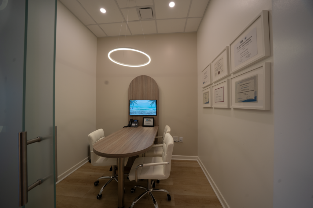 By 2022, two realities began shaping the next chapter of the practice. The original operatory clinic had reached its physical limits, and discussions with the landlord confirmed that the building had been sold for future condominium development. With a defined timeline on their tenancy, expansion within the existing space was no longer a viable long-term solution. Dr. Sara and Amir were committed to remaining within the same geographic area. The opportunity emerged when their real estate agent found a 2200 sq/ft ground floor unit in a busy single-story plaza just five minutes from their original location. With ample parking and strong visibility, supported by anchor tenants such as Canadian Tire and a busy driving test center, foot and vehicle traffic increased significantly. Planning was thoughtful and precise. Over five months, the couple worked closely with their design, contractors, and equipment team to create seven operatories focused on efficiency, comfort, and long-term growth. They took possession in July 2024 and officially relocated in January 2025.