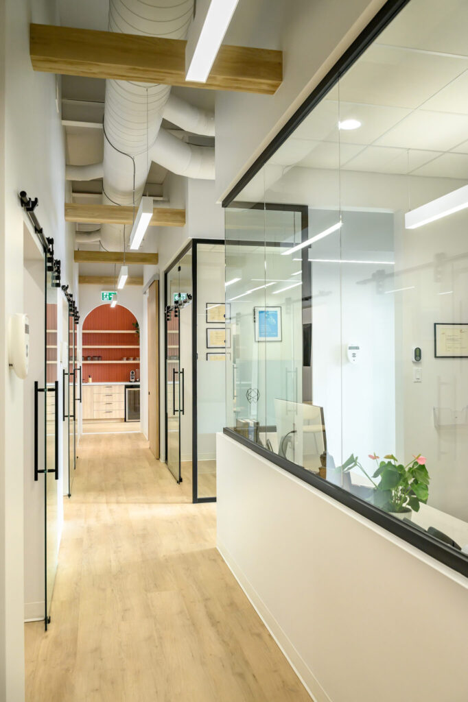 One day Dr. Viens noticed a vacant corner unit in a single-story plaza along a main road. At 3,300 sq/ft, it was larger than her original desires. She decided that it also presented an exciting opportunity which led her to take a phased approach towards her goals. Phase one would optimize the space into a 2,200 sq/ft dental practice, while subleasing the remaining unit, thereby minimizing expenses while enabling her to secure a location with excellent visibility and traffic flow. The clinic was designed for expansion. Five operatories were fully plumbed, although only three were equipped at opening. A fourth chair followed within months, and by February 2026, the fifth operatory was completed. In the meantime, the remaining dental space became a boutique photography studio for clinical documentation and treatment consultations. By letting the practice grow naturally, Dr. Viens created a flexible business model that could evolve at the pace of her growing patient base.