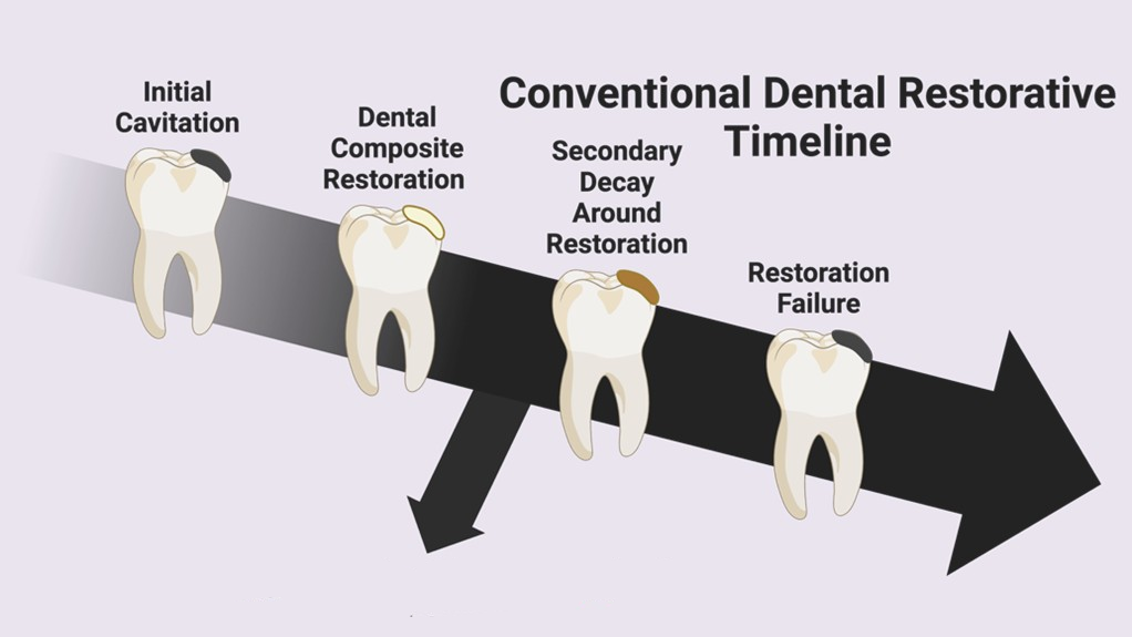 In our search for a life partner, we often seek a union built on strength, stability, and longevity—one that can withstand the test of time. In the world of restorative dentistry, the search is not so different, as we too aim to find the best material to restore tooth structures following the progression of dental decay, which may extend through the life of the patient. Finding this reliable (clinical) partner can feel like the search for “the one”. For decades, dentists have relied on methacrylate (MA) resin-based restorative materials (RBRs) as their go-to partners.1 On the surface, this relationship seems ideal. These materials are aesthetically pleasing, matching the natural colour of teeth, easy to work with, and far safer than their problematic and toxic (no pun intended) predecessor, the mercury-containing amalgam. Better yet, these MA-RBRs do not require invasive undercuts to be retained within the tooth, and instead, have the ability to bond both chemically and micromechanically to tooth structures, forming a connection that should last.