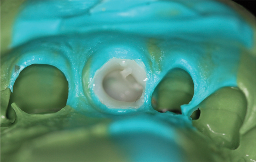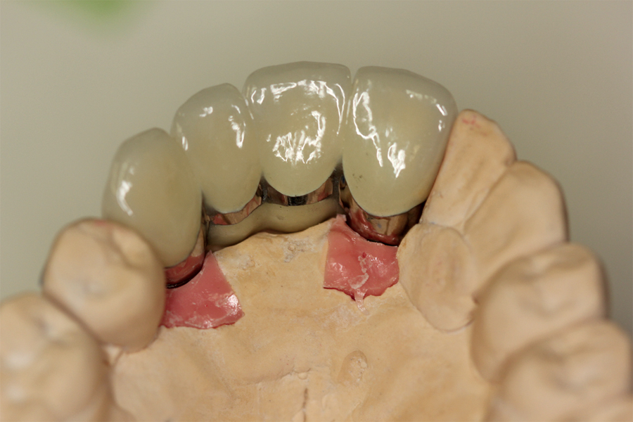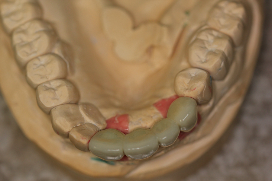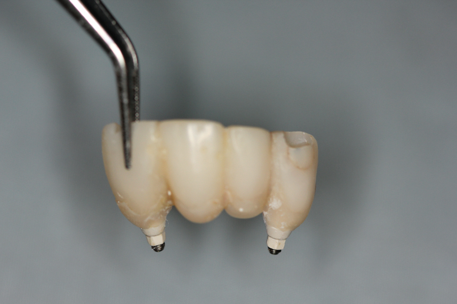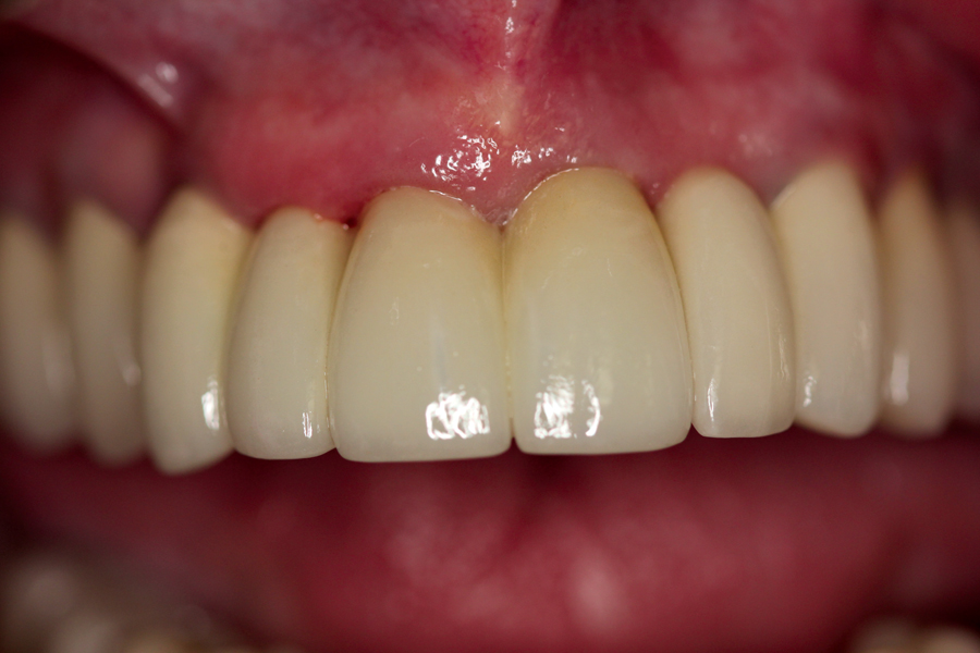 After two additional months of healing, the provisional was removed and impressions taken for final restoration. (Lab work up, final restoration and insert shown below).OH