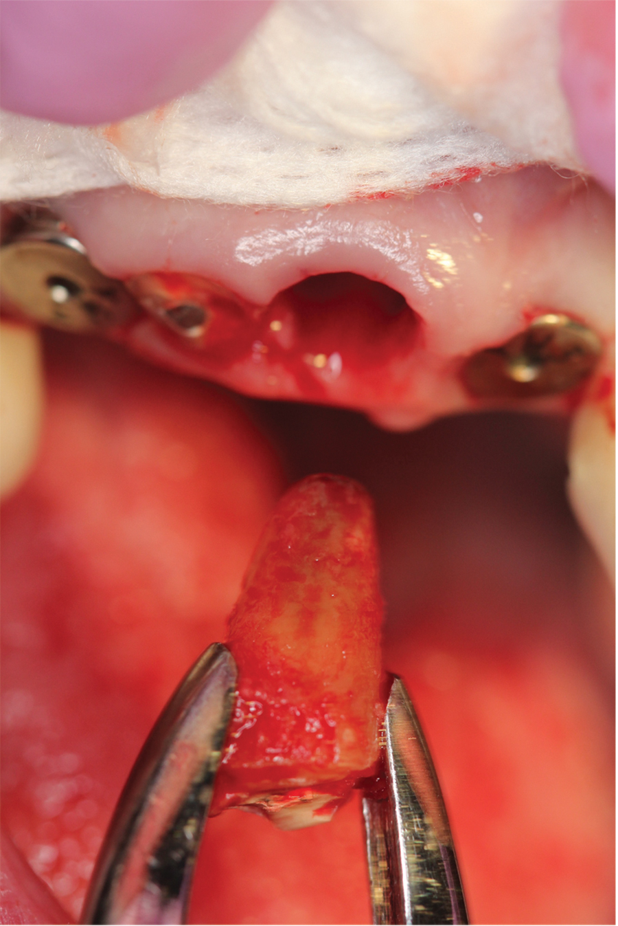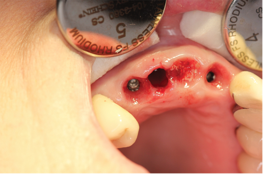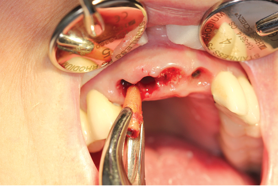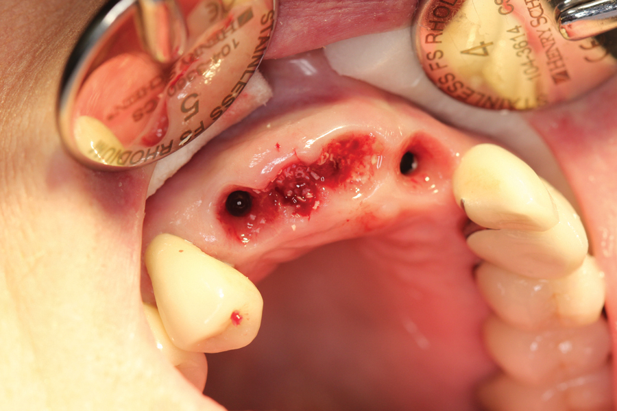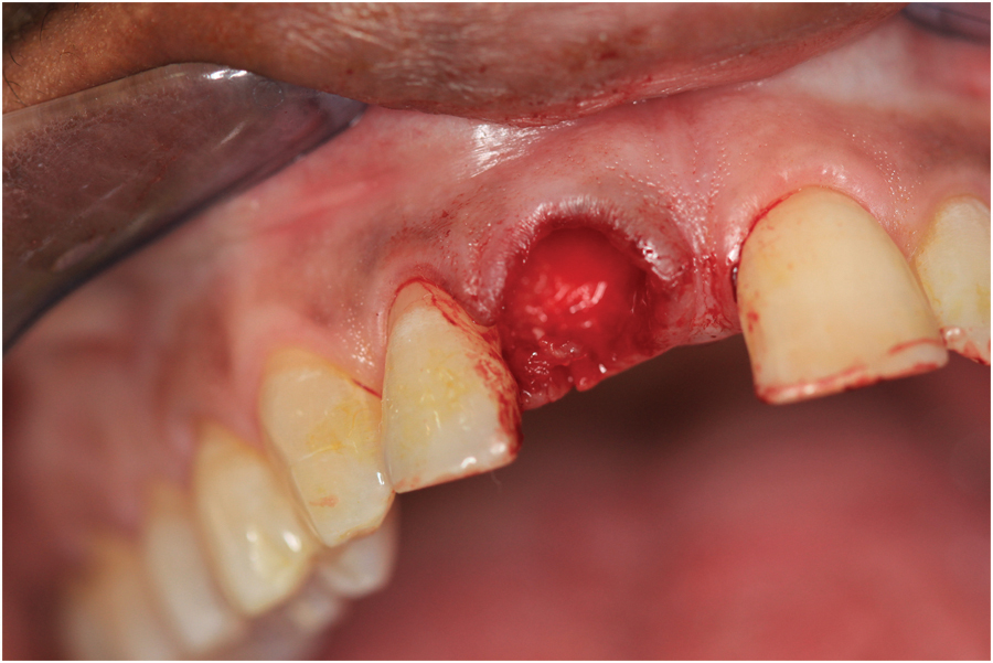 This is significant since both hard and soft tissue tend to resorb immediately after extractions.10-13 Without careful planning and controlling for this resorption during the healing stages, papillae will blunt resulting in the dreaded ‘black triangles’. This is compounded when managing the healing around multiple adjacent extractions.