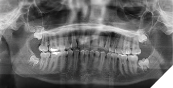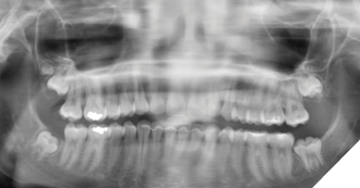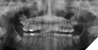 The patient was seen again one year later and deemed appropriate to proceed with surgery. Teeth #18, 28, 38 and 48 were removed under general anesthesia. Tooth #19 was retained due to its high position, and the patient remained in follow-up (Fig. 3).