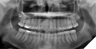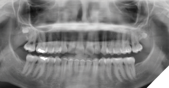 A 15-year-old female was referred for evaluation of impacted third molars. She was asymptomatic with a noncontributory medical history. Clinically, the impacted teeth exhibited completes emergence with no permucosal exposure. Panoramic radiography confirmed impaction of teeth #18, 28, 38 and 48, with suspected early development of a right maxillary supernumerary fourth molar. The maxillary third molars were positioned high in the maxilla, and surgery was deferred to allow further descent of these teeth (Fig. 1).