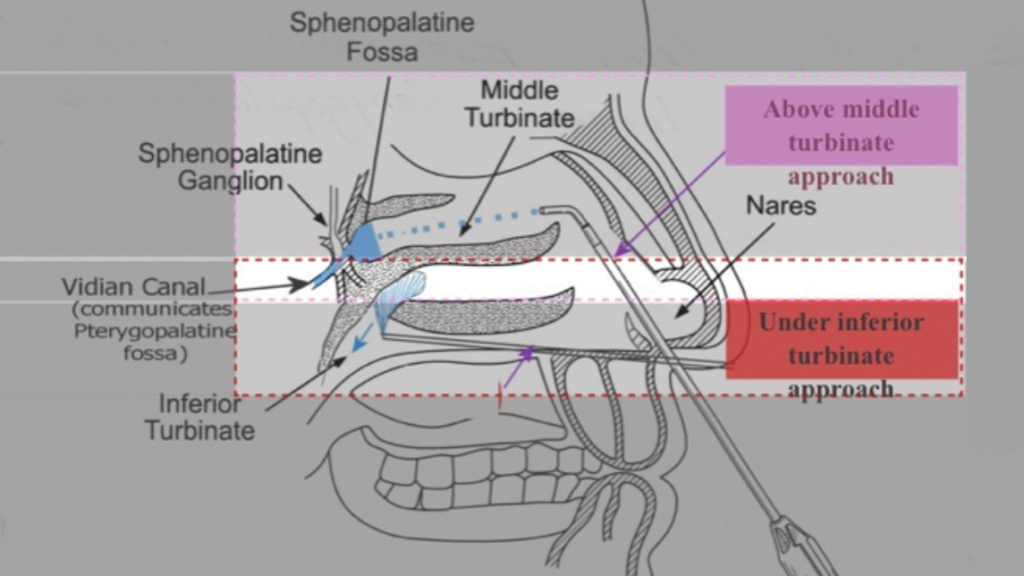 - Tolba R, Weiss AL, Denis DJ. Sphenopalatine ganglion block and radiofrequency ablation: technical notes and efficacy. Ochsner J. 2019;19(1):32–37.
