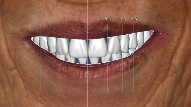 A 55-year-old woman presented with a chief complaint of wanting to complete the treatment of her maxilla and mandible that had begun elsewhere a number of years ago. The patient reported that she had several implants placed and provisional bridges inserted a number of years ago. A review of her medical history revealed no significant findings. A clinical exam was performed, and the following data was collected: a full mouth series radiographic survey, a cone beam CT scan, intraoral surfaces scans, full face and intraoral photos (Figs. 1,2,3).