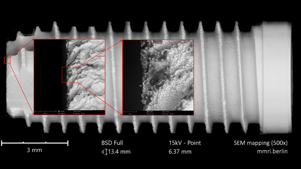 The CleanImplant Foundation has established a scientifically rigorous protocol to address the challenge of implant surface contamination. The Foundation’s methodology involves examining sterile-packaged implants under controlled cleanroom conditions to prevent external contamination during analysis. Scanning electron microscopy (SEM) coupled with energy-dispersive X-ray spectroscopy (EDS) can precisely identify and quantify both organic and inorganic residues on implant surfaces. Elemental mapping distinguishes intrinsic titanium or zirconia from extrinsic contaminants, including carbonaceous residues and foreign metals like iron-chromium compounds or tungsten. This analytical framework is performed exclusively in officially accredited testing laboratories according to ILAC MRA / DIN EN ISO/IEC 17025 standards, ensuring consistent and reliable results across evaluations. This systematic approach enables an objective comparison of implant surface cleanliness across different manufacturers and product lines.