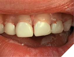 One treatment modality that is effective with incipient decay of this nature is professionally applied Silver Diamine Fluoride (SDF). SDF can help to arrest or slow down the progression of the lesions. One side effect that parents need to be warned about is black staining. It is important to discuss this before the treatment because it may introduce a real esthetic concern. If the teeth are extensively decayed, and with draining fistulas, the only treatment may be extraction of effected teeth (Fig. 3). If the teeth have cavitated lesions, then restorative options can be given. This usually involves an extensive treatment plan with sedation, typically a general anaesthetic (GA). For the very young, treatment should only be caried out at a hospital for safety reasons. Restoring the teeth will give the child a full functioning dentition and let the jaws develop properly. The ideal restoration for gross decay from ECC is a full coverage crown. The best being zirconium crowns (Fig. 4) or stainless steel with plastic white facings. Since the work is done under GA, the best and strongest treatment options should be considered. This will help to prevent further treatments due to failure that could involve subsequent sedations.