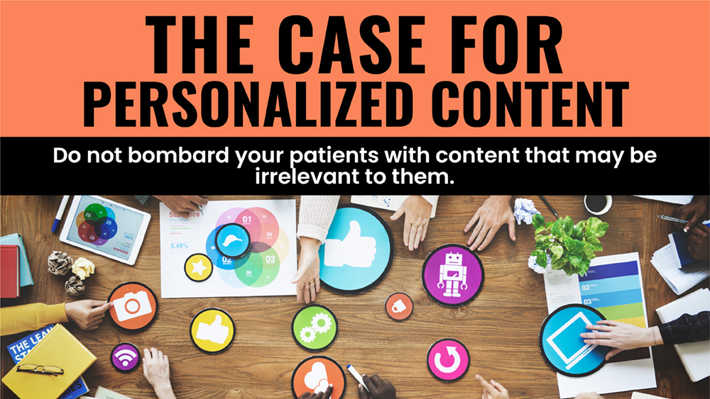 Do not bombard your patients with content that may be irrelevant to them. Get a competitive edge by “segmenting” your community. See the unique people within the collective patient base. Make the most of your marketing efforts. Foster a healthy culture.
